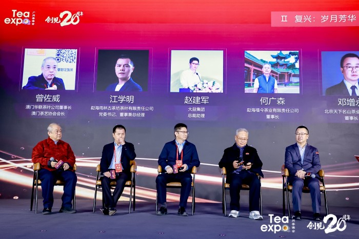20年间,广州茶博会已成为展示品类遍及茶业全产业链,各产地、各茶类、各品牌推陈出新的大舞台,吸引了众多关注的目光。品牌企业访谈,大益集团总裁助理赵建军,中国茶叶流通协会副会长、勐海雨林古茶坊茶叶有限责任公司党委副书记、董事兼总经理江学明,勐海福今茶业有限责任公司董事长何广森,澳门华联茶叶公司董事长、澳门茶艺协会会长曾佐威,北京天下名山茶业有限公司董事长邓增永分别谈到企业的发展和广州茶博会一路见证,一路成长。来自茶产区的代表和资深专家,勐海县委常委、县人民政府副县长夏白梅,广东省茶叶收藏与鉴赏协会会长陈栋,福建省福鼎市第五届茶业协会会长、福鼎白茶制作技艺非物质文化遗产传承人周庆贺接受访谈。南方报业传媒集团编委,南方农村报社党委书记、主编严亮,中国网广州项目负责人王长青,广东省冷链协会创会会长、采购&冷链总编辑李健华,天津日报高级记者郭晓莹,广东省茶文化促进会秘书长、《掌柜说》创始人张梓阳接受访谈。