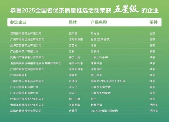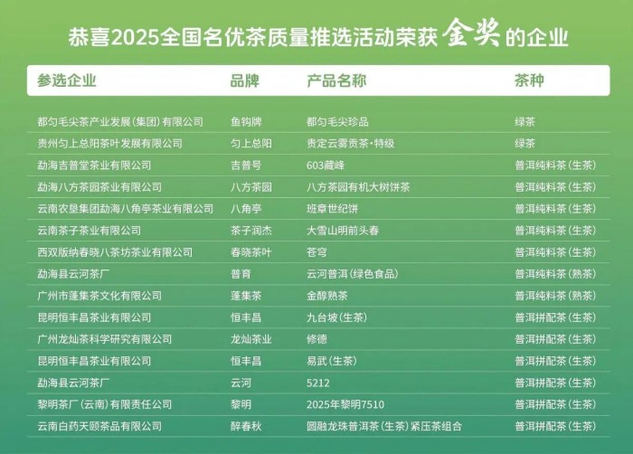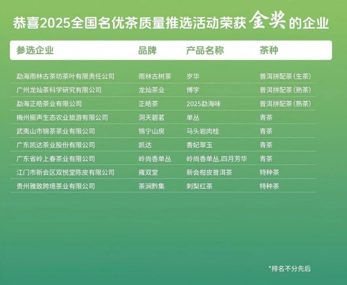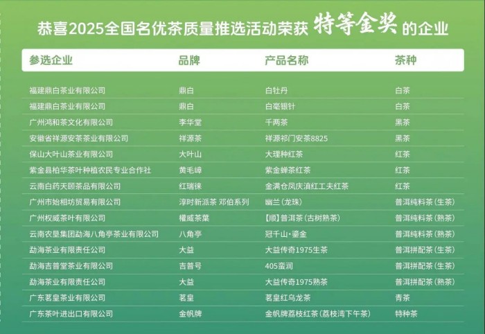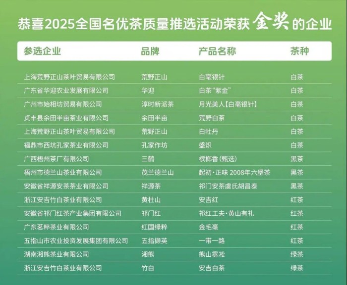 2025 全国名优茶质量推选活动为中国茶产业搭建了高端展示与交流平台,也为消费者了解高品质茶叶提供了新渠道。未来,中国(广州)国际茶业博览会将在茶文化传承发展中持续发力,促进茶产业繁荣进步,推动茶文化在新时代发扬光大,让更多人品味茶香。我们期待更多优质茶叶参与到活动中来,携手共谱中国茶文化新篇。在此,衷心感谢所有参与和支持本次活动的茶企、专家、媒体和广大茶友!期待在下一次全国名优茶质量推选活动中与您再次相逢,共品茗香。