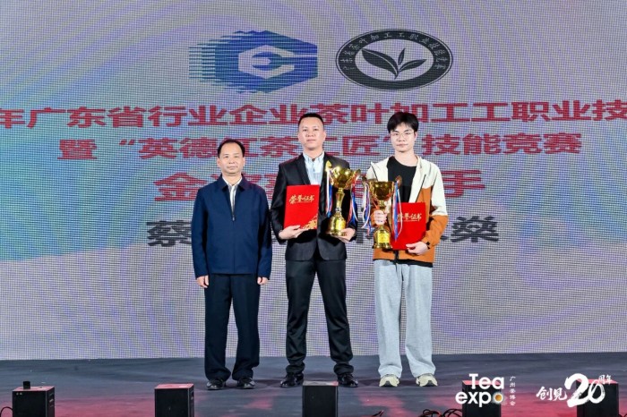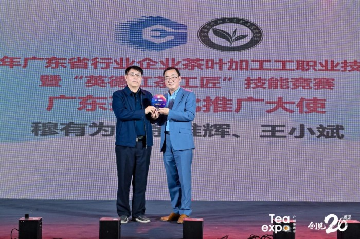 11月21日,2025中国(广州)国际茶业博览会开幕第二天,在展会现场,广交会展馆B区10.2馆会议室,举行了2025广东省茶叶加工工职业技能竞赛颁奖典礼。